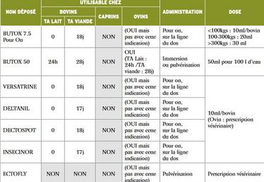 Produits de désinsectisation utilisables pour le traitement des ruminants.