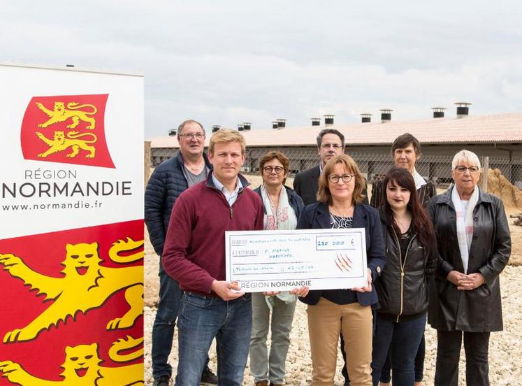 Même de loin le bâtiment est impressionnant. Un poulailler de 3000 mètres carrés qui abrite 40 000 poules et produit jusqu’à 38 000 oeufs par jour depuis janvier 2019. Avec des ouvertures qui permettent aux gallinacés d’aller et venir sur un immense terrain en pleine campagne. Un élevage qualitatif, du plein air, et dernier cri, pilotable d’un simple smartphone pour certaines fonctionnalités. Anne-Laure Marteau, ici à titre de conseillère régionale, mais également secrétaire générale de la chambre d’agriculture de l’Eure, est enthousiaste. « Je suis ici d’une part pour effectuer une visite post-commission, et aussi pour parler de l’investissement de l’Europe et de la Région dans l’agriculture normande. À l’heure où l’Europe est souvent décriée, cela me paraît important de montrer à travers cet élevage, l’impact concret des aides européennes. » Pour l’élue, « ce projet monté sur des bases financières solides est bien en phase avec la politique de la région pour une agriculture performante économiquement. » Marius Voeltzel, 27 ans, l’exploitant des lieux, n’aurait jamais pu monter son projet sans les subventions de l’Europe et de la Région. « En tout, j’estime le coût global de mon installation à 1 500 000 euros. L’Europe et la Région m’ont aidé à hauteur de 230 000 euros. Chacune ayant contribué à peu près pour 50 % de la somme. Sans cette aide la banque ne m’aurait pas prêté le reste. » Marius a bénéficié pour 110 000 euros du dispositif d’investissement pour une agriculture normande performante, et pour 120 000 euros du dispositif transformation à la ferme et circuit courts.