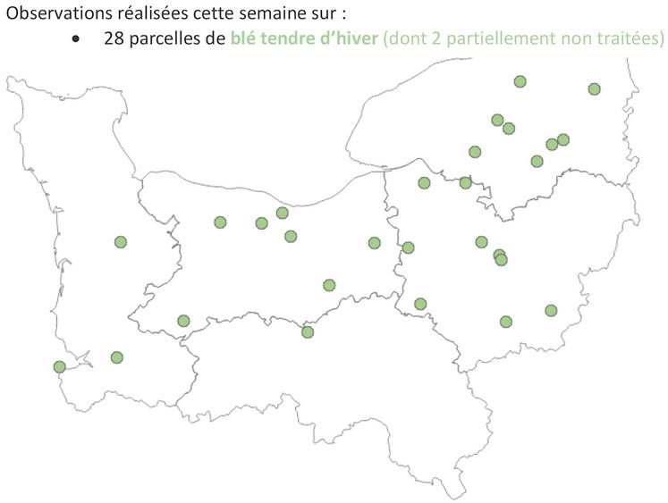 28 parcelles de blé tendre ont été observées sur l'ensemble de la Normandie :