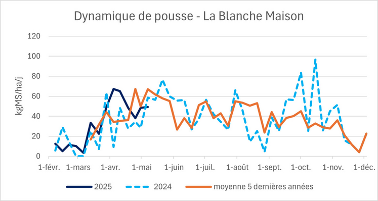 La croissance de la semaine reste assez faible pour la période avec une hauteur d'herbe moyenne de 7 cm sur nos paddocks, nous n'avons pas bénéficié de la pluie de la semaine dernière et attendons la prochaine pour relancer notre dynamique de pousse.