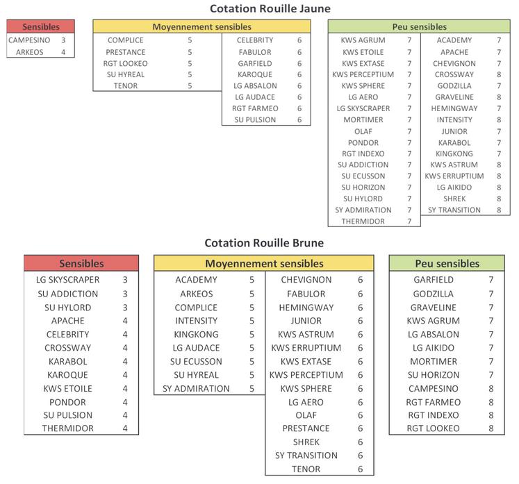 Si les rouilles étaient absentes au moment du T2 (DFE - gonflement), un traitement complémentaire peut être justifié. Utiliser une triazole efficace (tébuconazole ou metconazole), associée ou non à une strobilurine, pour assurer une bonne protection.