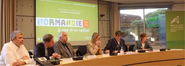« Région, départements, filières... Tous les acteurs se mobilisent pour reprendre les devants d’une communication positive ». Lundi dernier à Caen, Sébastien Windsor, président de la CRAN (Chambre régionale d’agriculture de Normandie) et élus des collectivités territoriales ont assuré la promotion de la Ferme Normandie à quelques jours de l’ouverture du SIA (Salon International de l’Agriculture).
