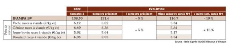 Cette inflation inédite se voit par la flambée des prix des matières premières subie par les éleveurs allaitants, sur les 12 derniers mois (chiffres à fin décembre 2022, source : Ipampa viande bovine, RICA 2015, traitement Institut technique de l’élevage) : aliments achetés : + 24 % ; engrais et amendements : + 74,8 % ; énergie et lubrifiants : + 48,6 % ; matériel et petits outillages : + 17,7 %. Cette hausse conséquence des matières premières, couplée à une revalorisation du SMIC, entraine une augmentation des indicateurs coûts de production de 15 % rien que sur l’année 2022 (calculés selon l’accord interprofessionnel en date du 22 mai 2019).